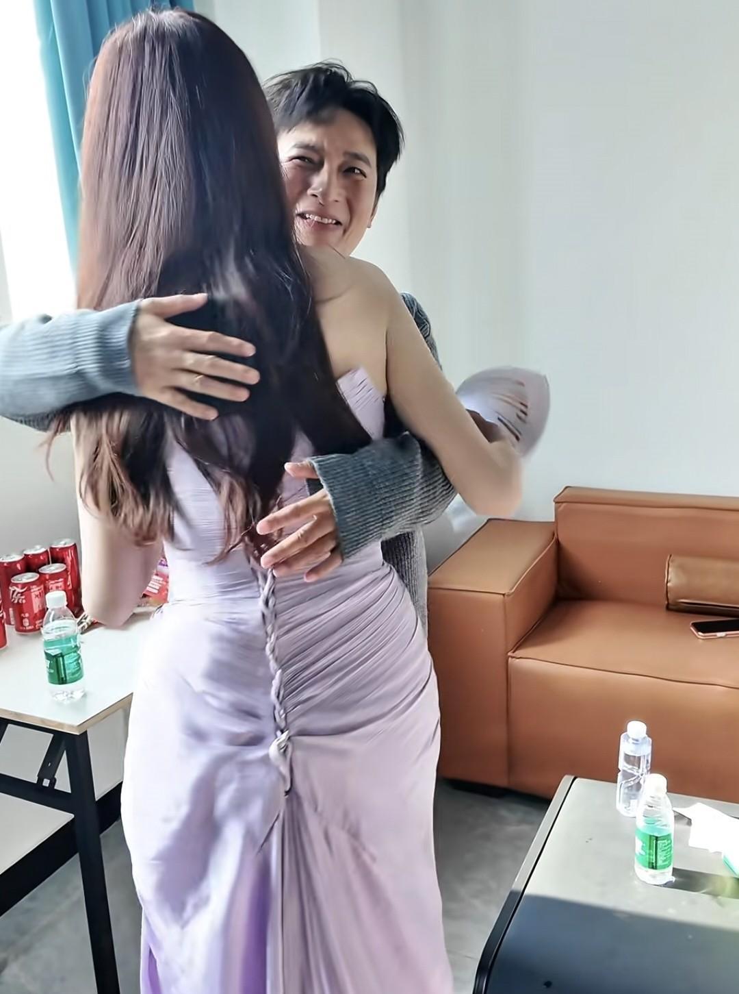 沈梦辰穿了高跟鞋比李维嘉还高,这也阻挡不了好朋友的拥抱,看维嘉的表情又要哭了,重逢的日子眼泪总是不断。