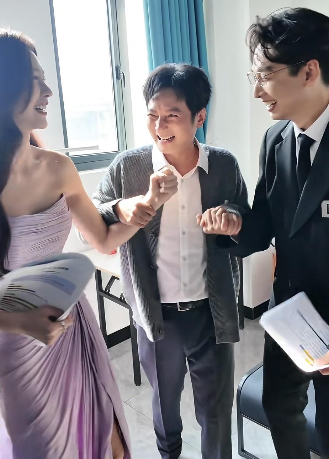 同时在后台的娜扎也过来打招呼,李维嘉直夸娜扎还是那么漂亮,老朋友约好了忙完要聚一聚。
